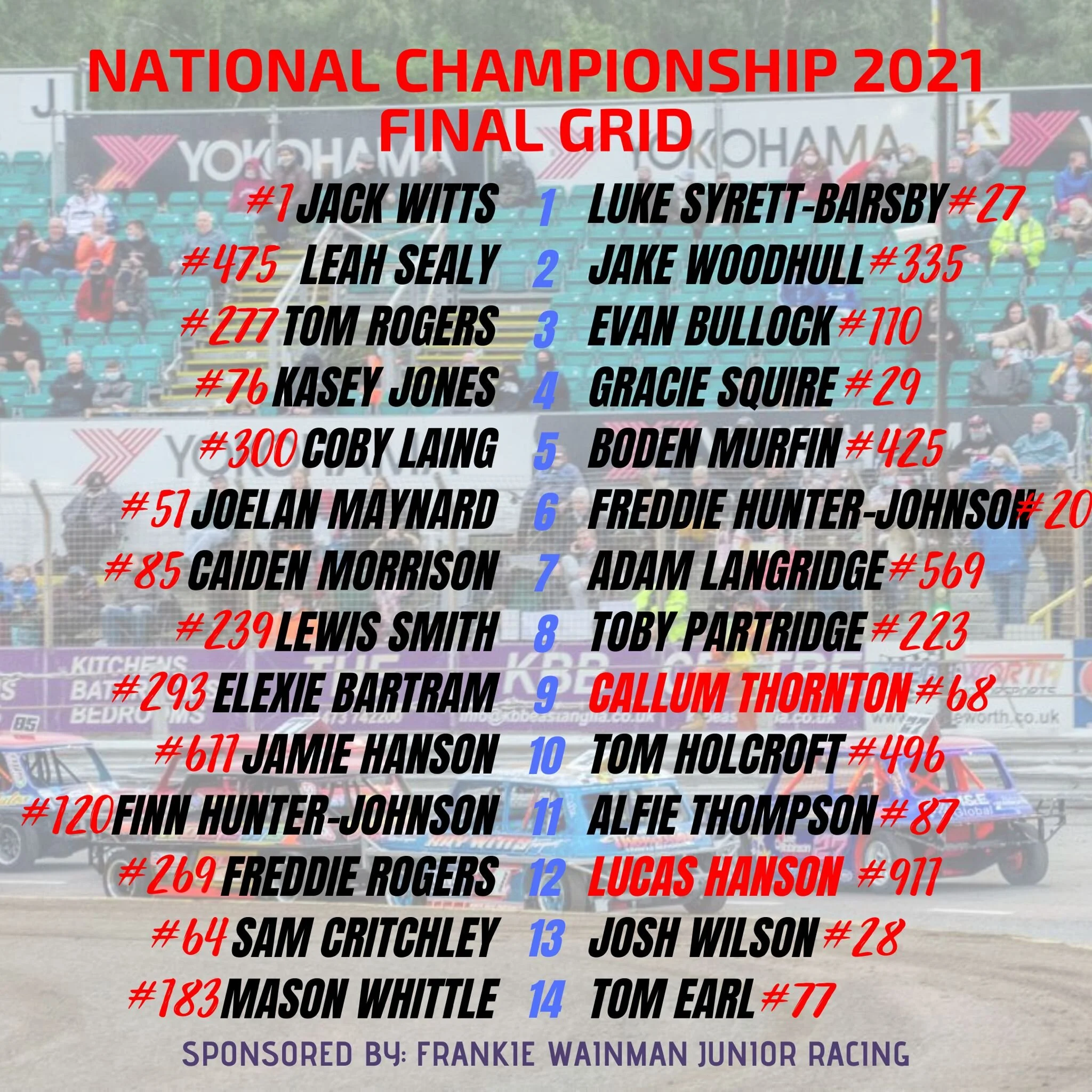 National Championship - Now confirmed as Saturday 23rd September at Bradford. There will be a last chance qualifier to take the final three spots on the grid. There will also be a couple of overseas entrants joining the grid.